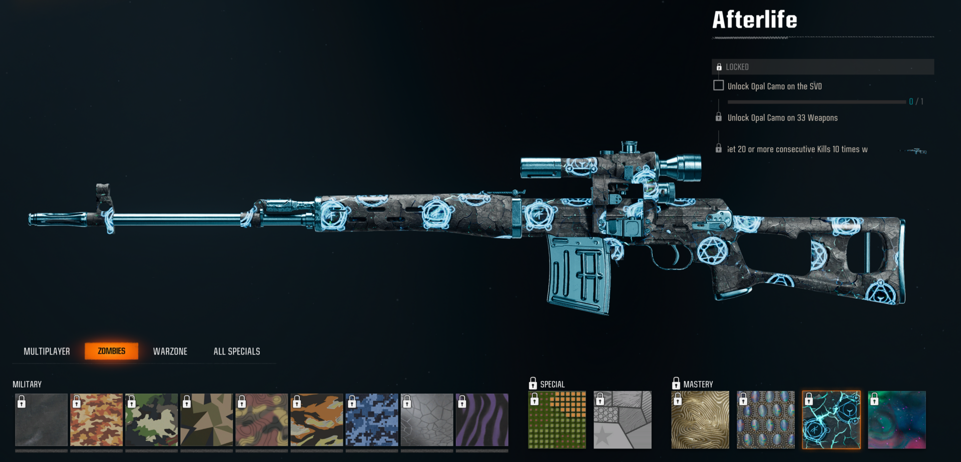 Skip the grind and buy BO6 Afterlife Camo Boost for any Black Ops 6 weapon. It’s the third Zombies mastery camo and it’s unlocked by earning all Mystic Gold & Opal camos for all BO6 weapons, as well as completing the Afterlife challenge on each one. We’ll do all the work for you!